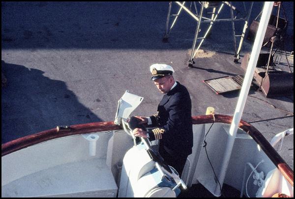 Kapten Sten Hellgren. Här lägger han till i Visby med m/s Polhem i augusti 1976.