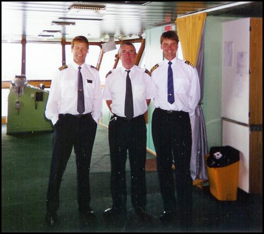 Här är en bild från bryggan tagen i juli 1995. Från vänster: John Mc Neil, Peter Evans och Göran Söderling.