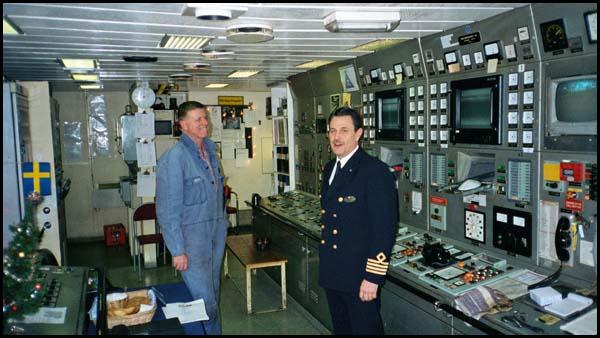 Ingemar Andersson får oväntat besök av Kapten i kontrollrummet i maskin. © Foto: Stefan Andersson