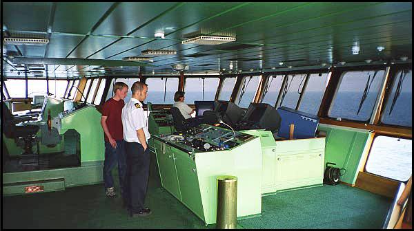 På kommandobryggan träffar vi på styrman Magnus Sundinsom kör fartyget medan vi är på rundvandring. © Foto: Stefan Andersson