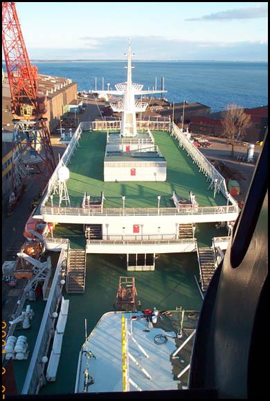 Till sist tar Thomas med oss längst upp på m/s Visbys skorsten. Här uppifrån har vi en vidunderlig utsikt.